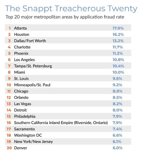 Let’s start with your fraud rate. The average application fraud rate for major metro areas that didn’t make the list was 3.6%.